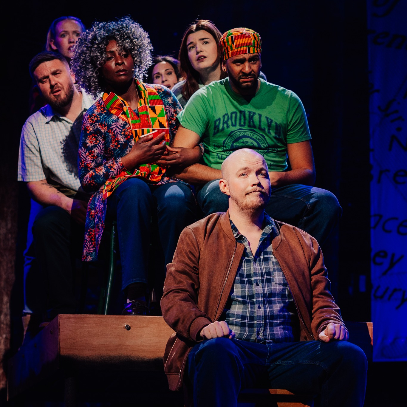 Threaded throughout the show are the experiences of those impacted by this event. Town Mayor, Claude (Richard Billings), steps up, uniting the community with the help Oz (Chris Wilson), the local policeman, teacher Beulah (Emily Hardy), Gander native Bonnie (Claire Morley), is concerned about the welfare of any animals left on the plane, dogged in her determination that they not be forgotten, and Janice (Megan Day) is the local news reporter, a rookie on her first day on the job. Beverley (Jacqueline Bell) is one of the pilots, the first female American Airlines captain, Hannah (Jessica Gardham), a mother who is desperately trying to contact her New York firefighter son. We get to glimpse a burgeoning romance between the very British Nick (Stu Hutchinson) and Texan Diane (Lana Davies), and the deterioration of another between Kevin T (Grant McIntyre) and Kevin J (Faisal Khodabukus). Theo Mayne, known for his appearance on the Traitors, created the biggest laughs on the night as Captain Bristol.